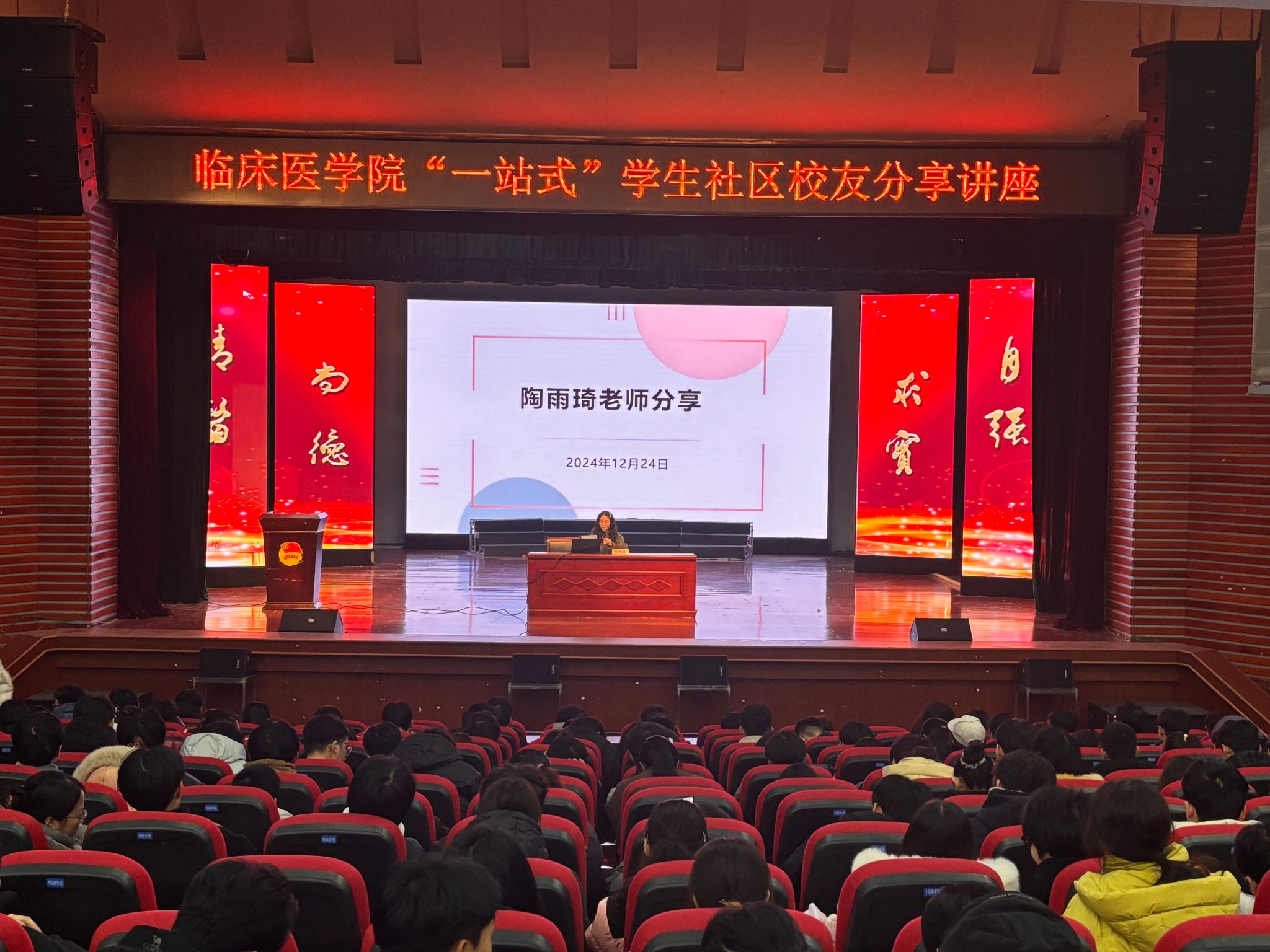 为帮助同学们明晰未来方向,激发学习热情,提升综合素质,2017届校友陶雨琦老师作“从课桌到职场——我的成长记录”主题讲座。她从医学专业课程学习、考研备战经验、从医过程中的挑战与感动等方面,为在场的医学生提供了宝贵的经验,让同学们对医学之路有更为清晰直观的认识。陶雨琦老师用自己的亲身经历,在同学们心中种下了努力与希望的种子,为未来的医学之路筑牢根基。